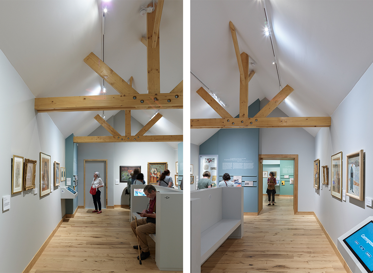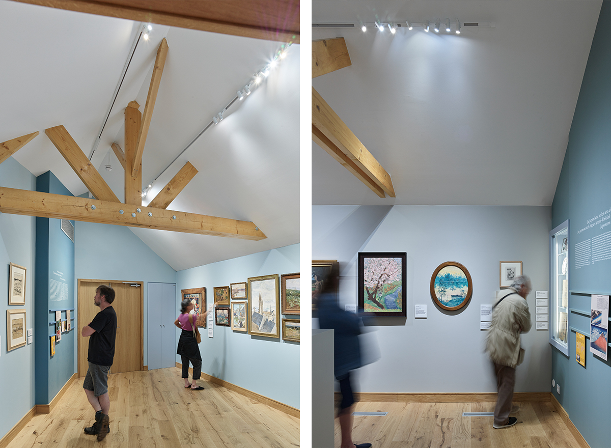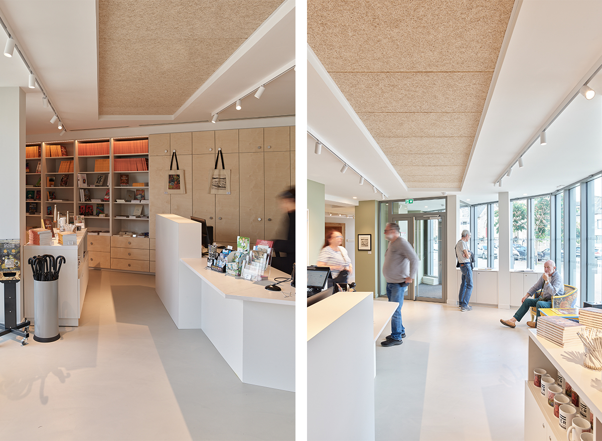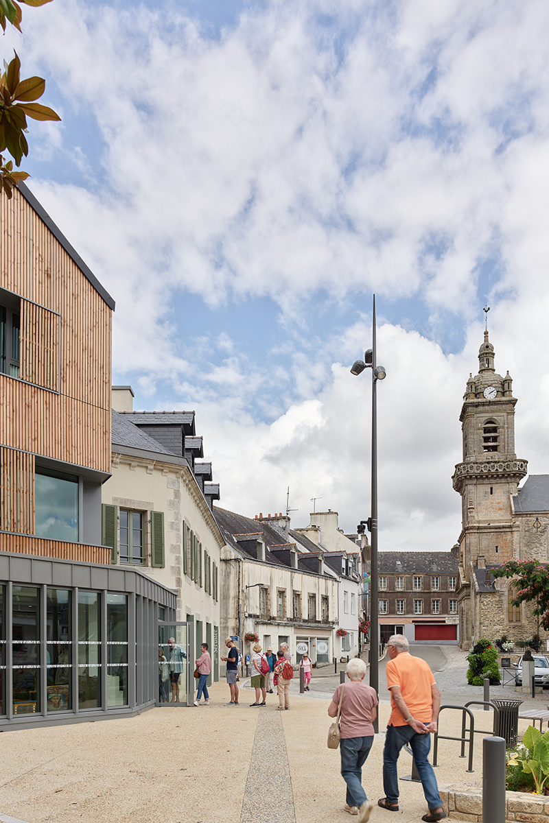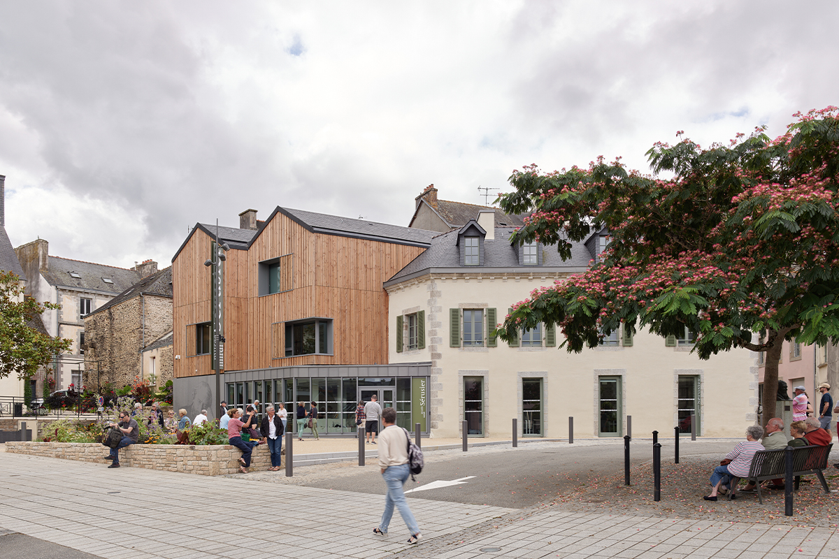 La lecture du musée est désormais très claire : les maisons restaurées conservent leurs ouvertures anciennes et révèlent leurs détails architecturaux. L'extension contemporaine, composée de deux volumes simples, fait face à la place André Le Gall et affirme la présence du musée dans l'espace urbain. Tout en s'exprimant dans une écriture contemporaine, elle conserve une filiation avec l'architecture traditionnelle et s'intègre de manière organique à l'arrière des maisons anciennes, répondant à la géométrie complexe et aux contraintes du site.