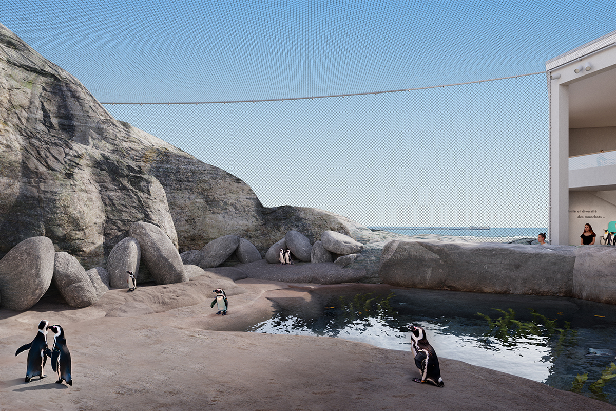 L'architecture “fait sortir" Nausicaá de ses murs par le Rocher des Manchots, la Forêt du Grand Nord et un ensemble d'émergences paysagères qui donnent à voir les biotopes avant même la visite, tandis qu'un hall entièrement recomposé offre une traversée lumineuse de la ville à la mer et clarifie les boucles de parcours. Un nouveau trajet immersif sur le cycle de l'eau dans le Grand Nord, une colonie de manchots repensée, un espace de training dédié au bien-être animal et une grande salle d'exposition temporaire modulable renouvellent l'expérience de visite et les outils de médiation.