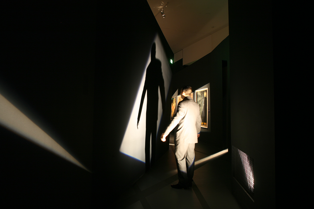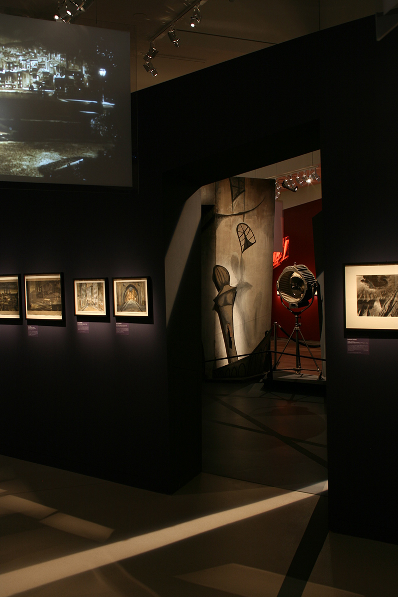 Programme : Exposition temporaire du 70e anniversaire de la Cinémathèque française, sur le Cinéma expressionniste allemand, période pour laquelle la Cinémathèque possède une des plus belles collections au monde ; elle présente différents documents et dessins de décors de films, la maquette du décor du «Cabinet du Docteur Caligari» et une vingtaine de films.