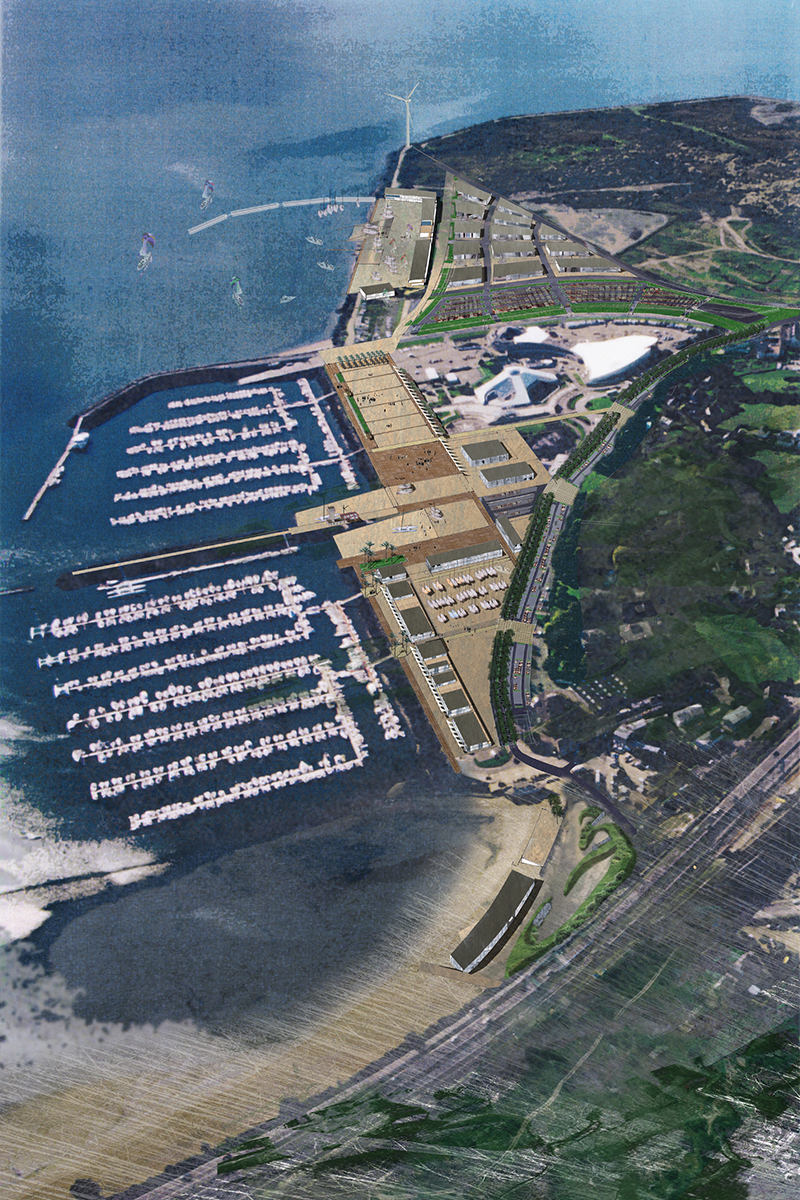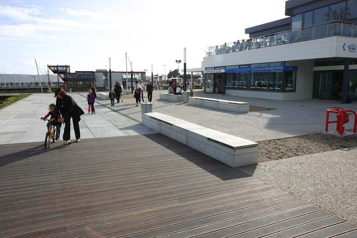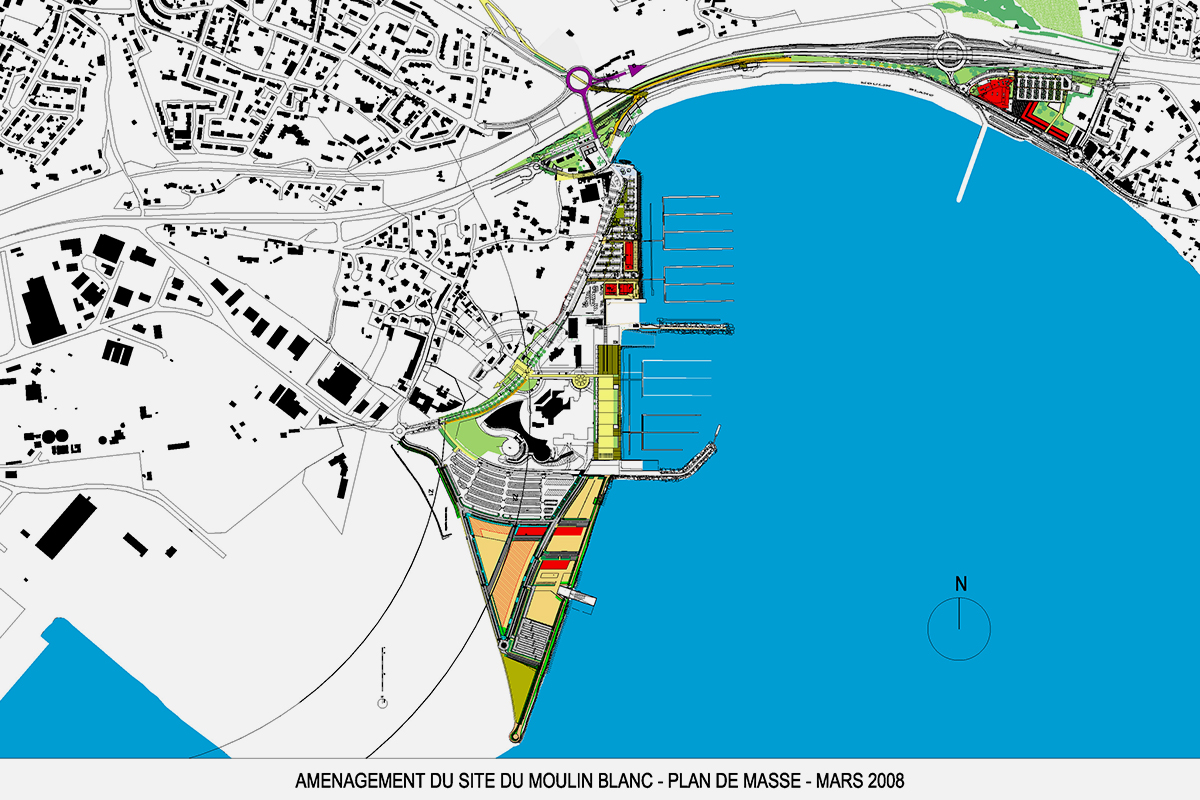Programme : Réaménagement du bord de mer, restructuration des fonctions (techniques, services, commerciales, stationnement,...) et définition des espaces publics du port de plaisance, abords d'Océanopolis, construction de la base de haute compétition «pôle Voile France» en voile légère « L'Adonnante»