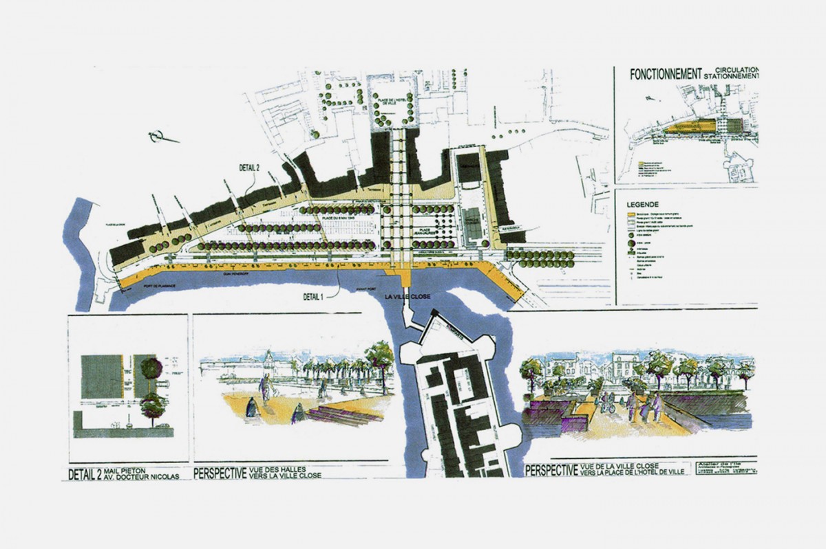 La réorganisation du coeur de ville de Concarneau a été organisée pour permettre une meilleure cohabitation des différents usagers et fonctions du centre urbain et touristique. Deux axes ont structuré le projet :