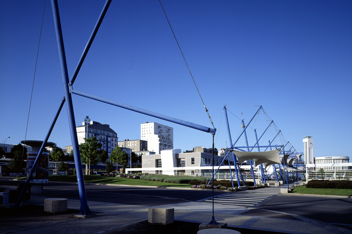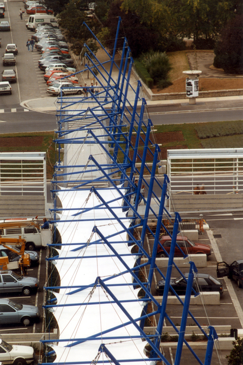 • de la mise en place d'une structure tendue de 200 mètres permettant des accès «à l'abri» et un repère signal important pour la gare