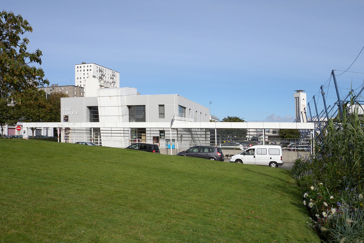 • de la démolition et de la reconstruction d'une nouvelle gare routière en intégrant le très bel auvent existant de béton de protection
