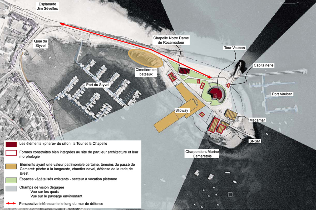 Une réflexion d'ensemble est portée sur les composants du Sillon de Camaret afin de lui redonner une organisation cohérente, de mettre en valeur les constructions d'époques successives témoins de l'histoire du port de Camaret (la Chapelle Notre Dame de Rocamadour, la Tour Vauban, les constructions liées aux activités maritimes) et de rendre compatibles les espaces face à l'accueil croissant de visiteurs que génère l'inscription de la Tour Vauban au patrimoine mondial de l'UNESCO.